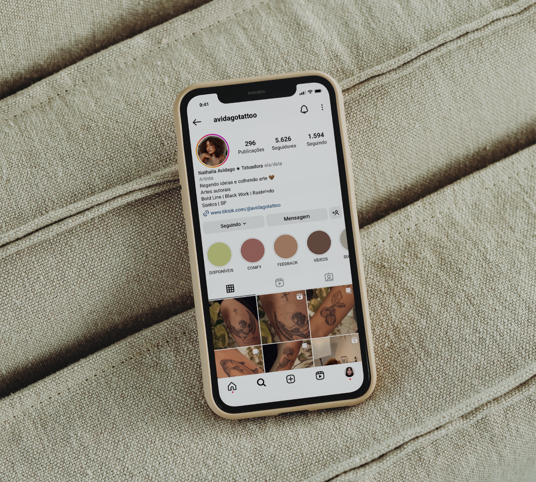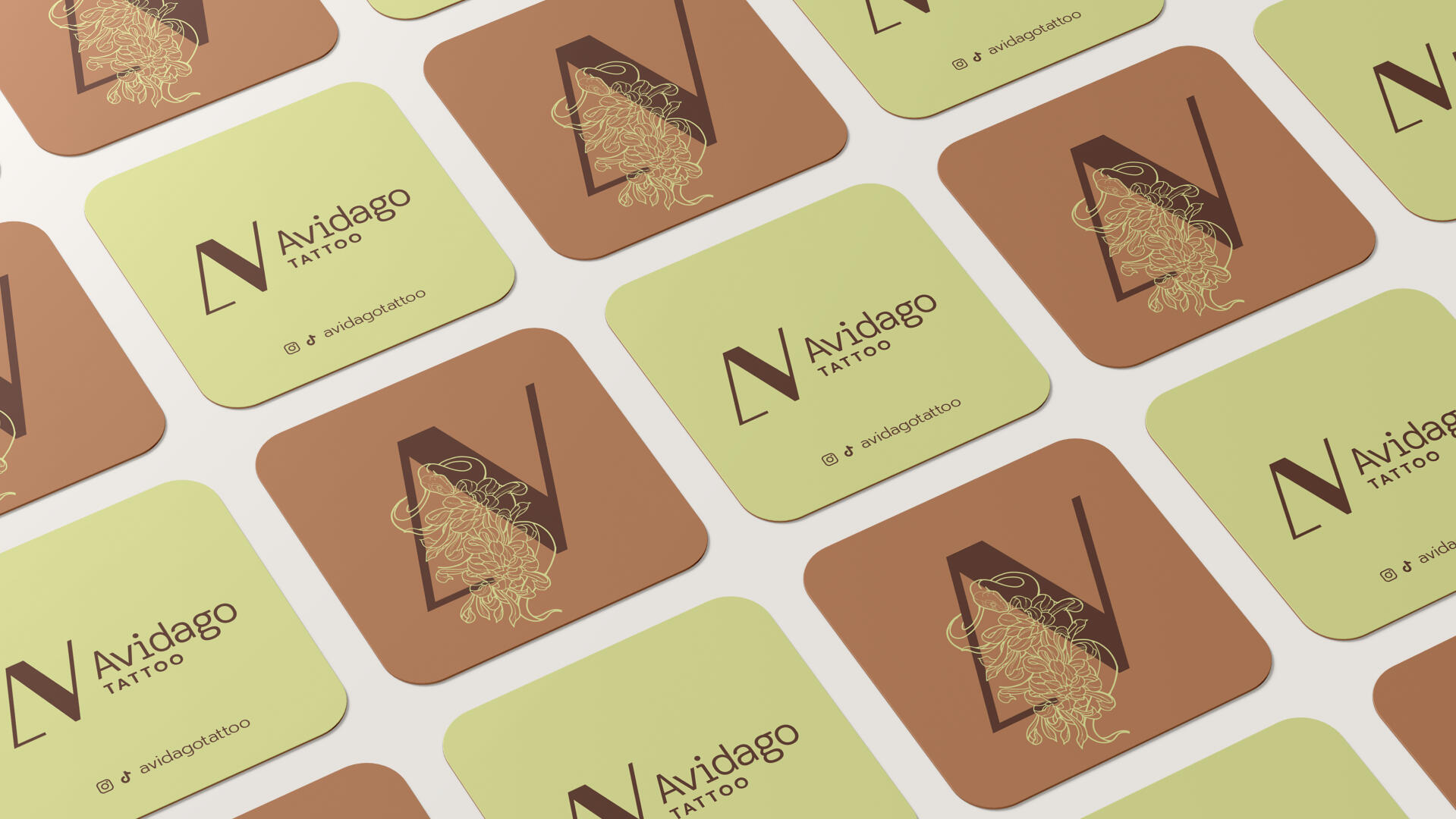 Uma celebração da natureza e da individualidade. O estilo de tatuagem inspirado na natureza de Nathalia reflete suas raízes brasileiras com o uso de cores de folhagem tropical. Seu logotipo incorpora suas iniciais, "N" para Nathalia e "AV" para Avidago.