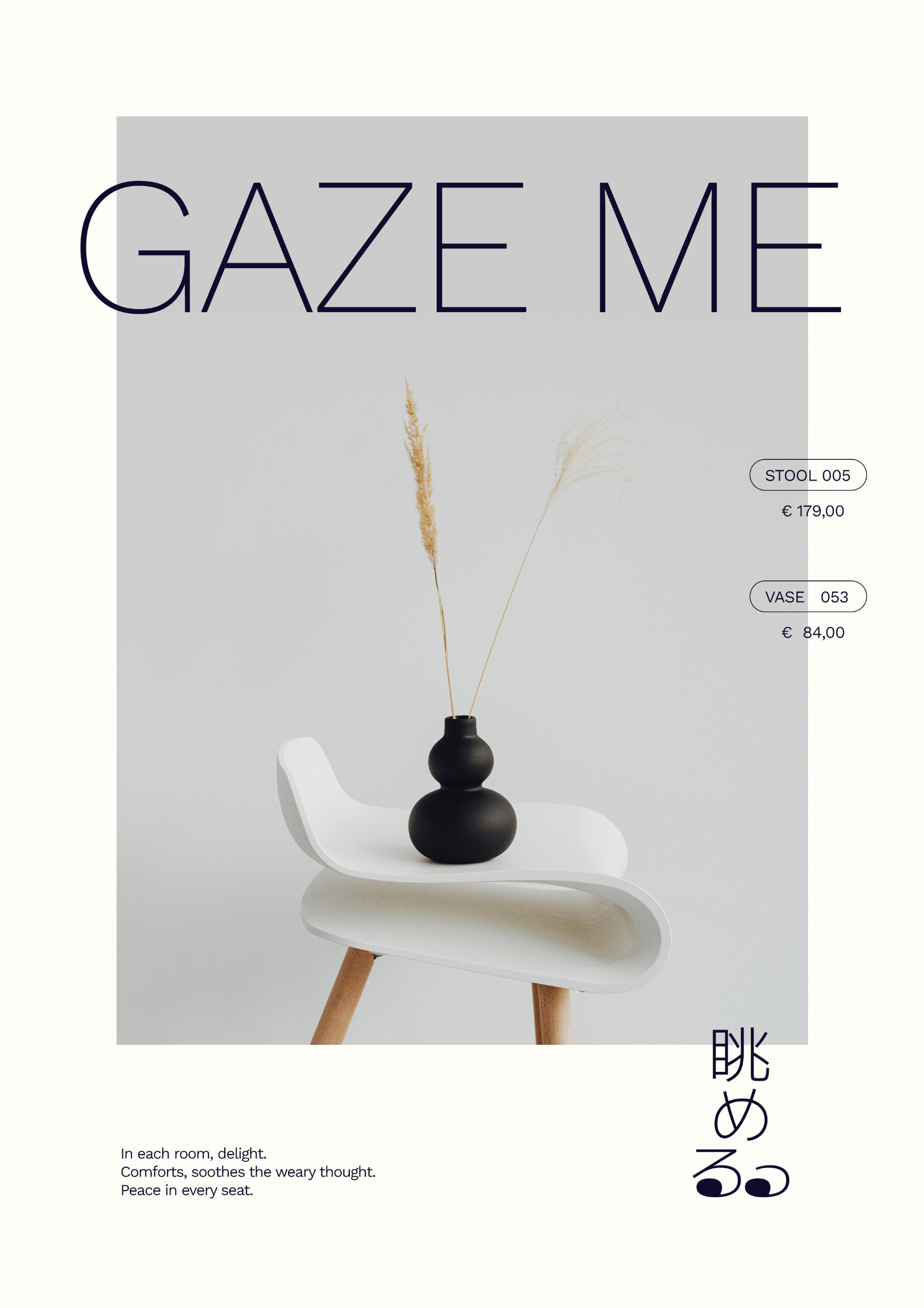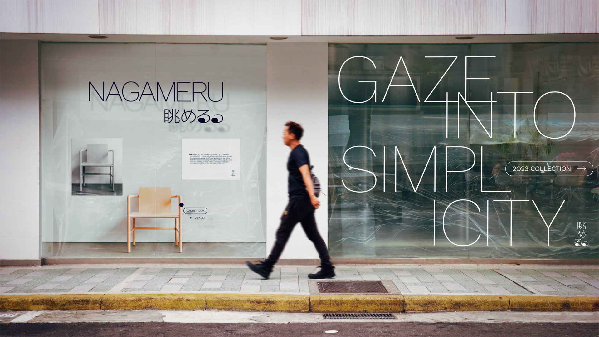 Nagameru (眺める) significa olhar algo por um período contínuo de tempo em japonês. O nome reflete a filosofia da marca e sua estética de design, convidando a desacelerar, apreciar a beleza ao seu redor e reservar um momento para simplesmente observar e refletir.Os olhos são intencionalmente colocados no sufixo ru (る), que na gramática japonesa é adicionado aos verbos para indicar o tempo presente. Esse detalhe associa a marca à percepção, atenção plena e foco, com um toque de peculiaridade.